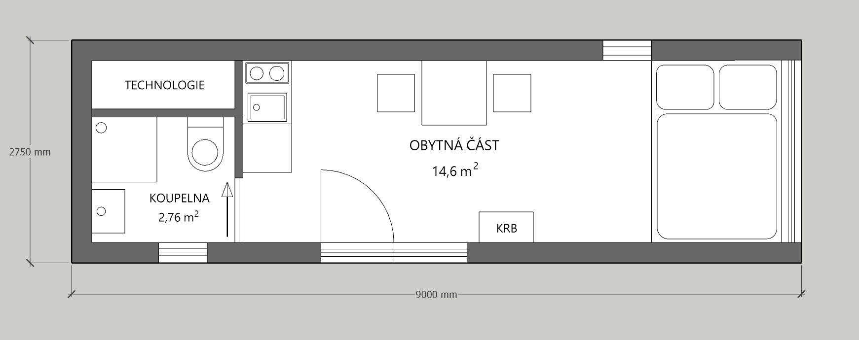 MINI XS je stavba vybavená technologií pro provoz bez napojení na veřejnou infrastrukturu. Jeho délka je 9 metrů a zastavěná plocha nepřekračuje 25 m². Taková stavba totiž nevyžaduje absolvovat složité stavební řízení. V případě, že se umísťuje na zahradu rodinného domu, není třeba žádné povolení. V případě, že se umísťuje na volný pozemek, postačí územní souhlas.